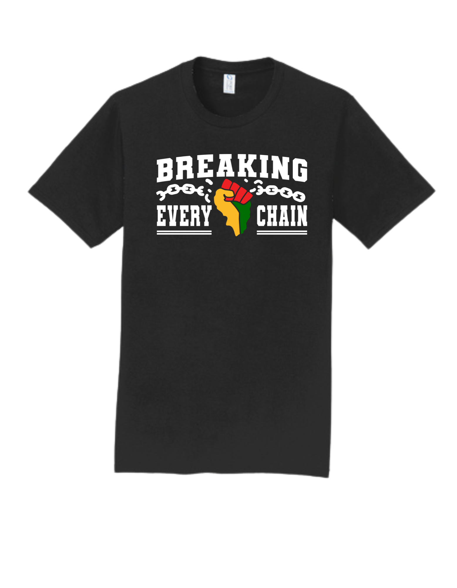 Celebrate Juneteenth with our exclusive "Breaking Every Chain" t-shirt. Featuring powerful symbolism and meaningful messaging, this shirt is perfect for showing your support and pride. Spread awareness and inspire change with this must-have Juneteenth essential.