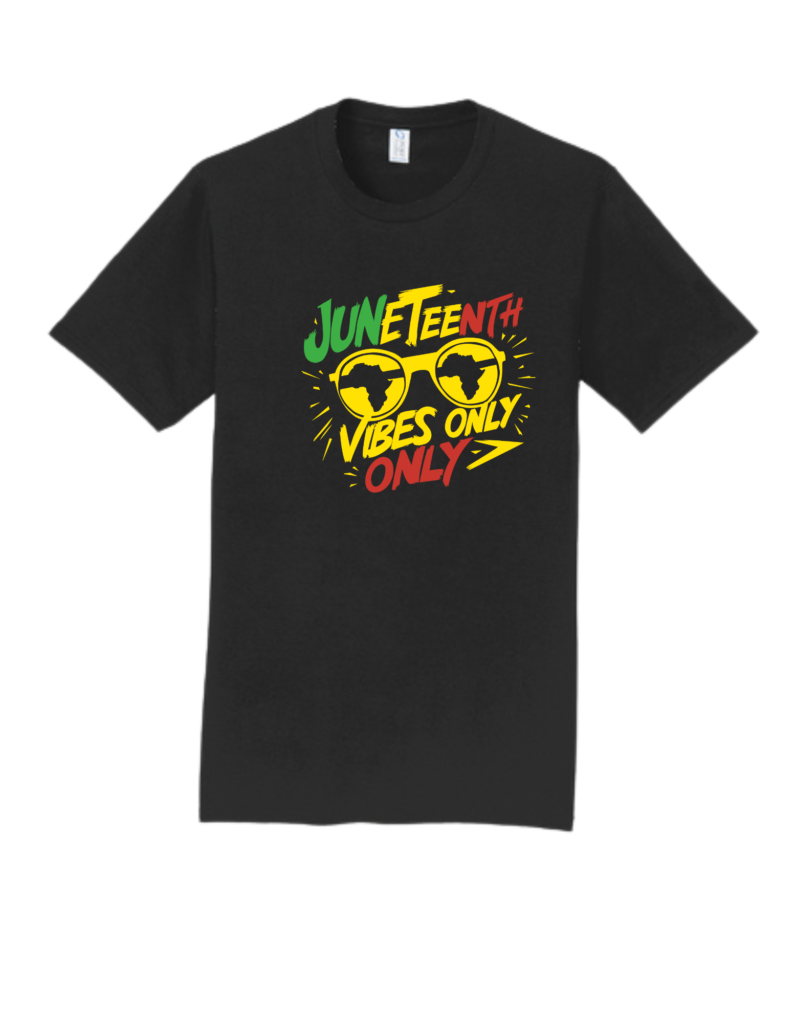 Celebrate the importance of Juneteenth with our Juneteenth Vibes Only Tshirt. This shirt features a unique design showcasing the significance of the holiday. Show your support and spread awareness with this comfortable and stylish tshirt.